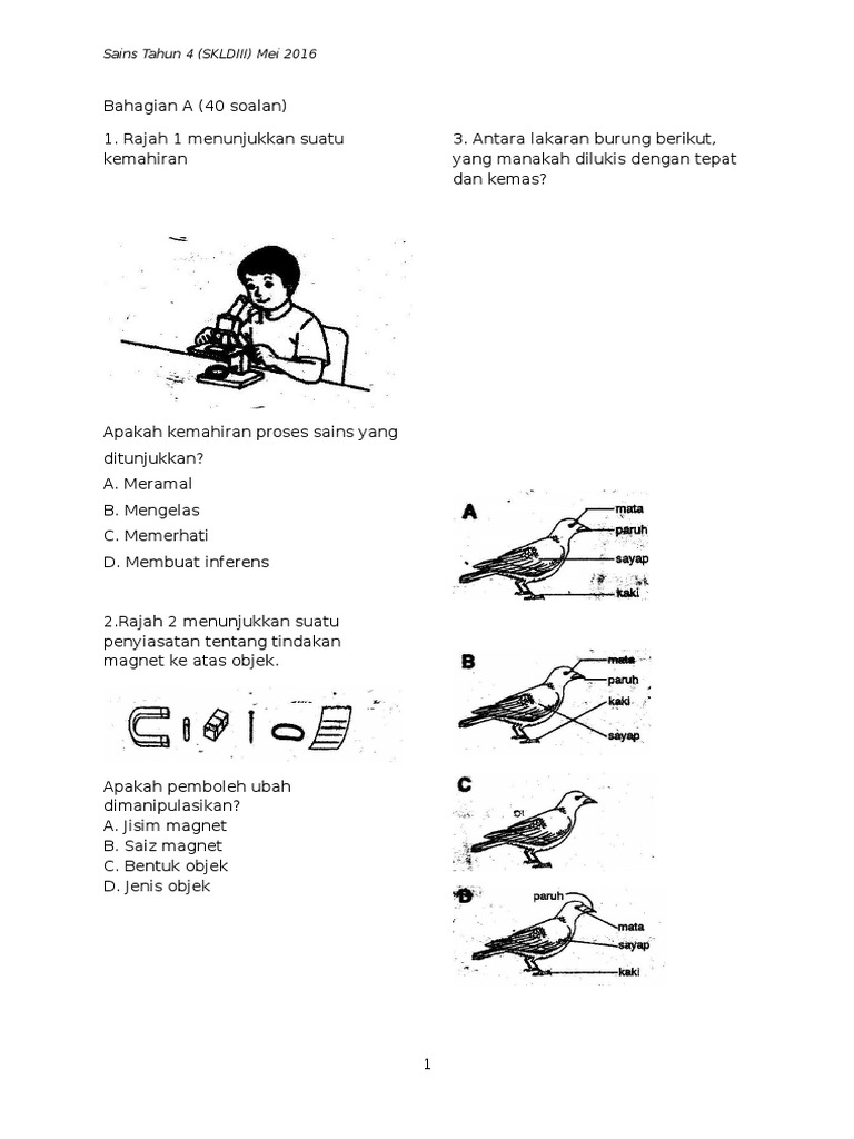 Ujian Pertengahan Tahun Sains Tahun 4 Kertas 1 Pdf